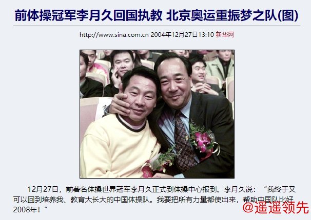 此次体操禁教事件中的主角之一李月久,当年也曾因为执教能力,被中国体操队聘请回来担任教练,并帮助中国体操女队在北京奥运会上击败美国队,获得队史首枚女团奥运金牌。